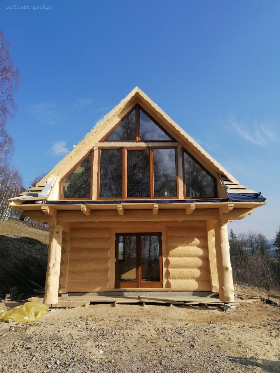 - szerszy profil drewna o grubośći 92 mm wykonany z kantówki czterowarstwowo klejonej
